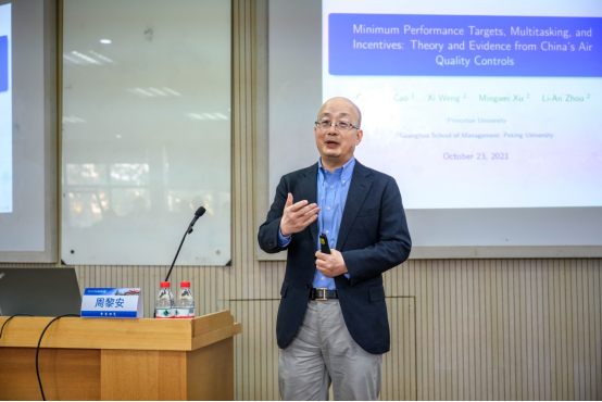 周黎安通过对地方官员的大气环境治理“一票否决”的考核机制,利用空气优良天数这一约束性指标,在注定失败和提前完成这两种情形下,使用断点回归方法,实证研究了地方官员在同时面临环境约束性指标和经济激励性指标的多重任务考核下的策略性行为。周黎安认为,空气环境治理属于约束性指标,无法完成将受到一定的惩罚(如约谈、点名),但是超额完成却不会受到奖励;经济增长属于激励性指标,在一定范围内越高越好,地方官员之间会展开竞争。在注定失败情形下,由于初期空气质量优良天数过少,年内的剩余时间即使每天空气质量都达标,全年的空气优良天数指标也已经无法实现;而在提前完成情形下,则官员从环境考核角度考虑,不再需要担心年内剩余时间的空气质量。由于工业企业大多是非国有企业,其排放的变化,可以认为是受到地方政府的压力,通过比较这两种情形有关时间节点前后的空气质量与企业排放情况,就可以考察地方官员对约束性条件的不同反应。他发现,在注定失败情形下,官员并不会破罐子破摔,而是会努力进行改进;而在提前完成情形下,官员会放松对排放的控制。周黎安进一步指出,地方政府主要通过影响国有企业的排放来完成其环境指标考核,且在提前完成情况下,其会放松对非国有企业排放的监管。同时,本地成长官员和外地调入官员的反应也有所不同,外地调入官员的策略性反应相对更为显著。此外,周黎安还发现,地方经济竞争压力的下降和中央环境监察的加强均有助于弱化地方官员的策略性反应。