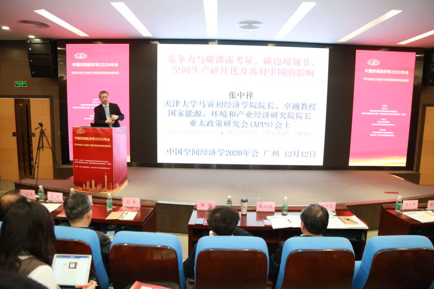 第十届中国空间经济学年会于2020年12月12-13日在广州中山大学隆重举行。天津大学马寅初经济学院创院院长、卓越教授,国家能源、环境和产业经济研究院院长张中祥教授应邀在开幕式以“竞争力与碳泄露考量、碳边境调节、空间生产碎片化及其对中国的影响”为题作了主旨发言。