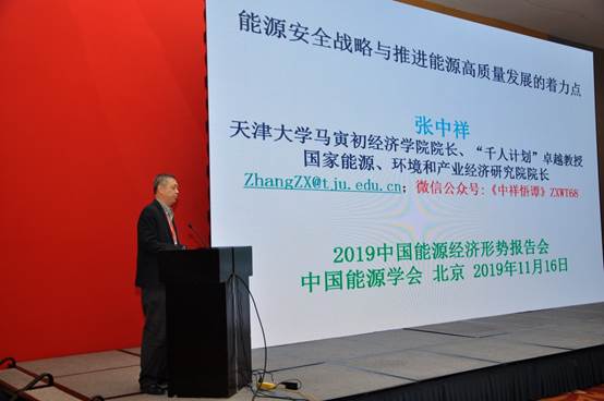 中共中央政治局常委、国务院总理、国家能源委员会主任李克强2019年10月11日主持召开国家能源委员会会议,研究进一步落实能源安全新战略,审议通过推动能源高质量发展实施意见。天津大学卓越教授,国家能源、环境和产业经济研究院院长张中祥的报告围绕能源安全新战略和能源高质量发展展开,对如何解读能源安全、用什么样的指标客观评价以及如何看待美国能源独立,从推动中国的能源结构转型升级,推动市场化改革、发挥价格在资源配置中决定性作用,统筹不同规划之间的协调,加强区域间的协作、通过制度创新促进能源结构和环境质量改善等方面为今后中国推动能源高质量分享了他的研究成果和观点。
