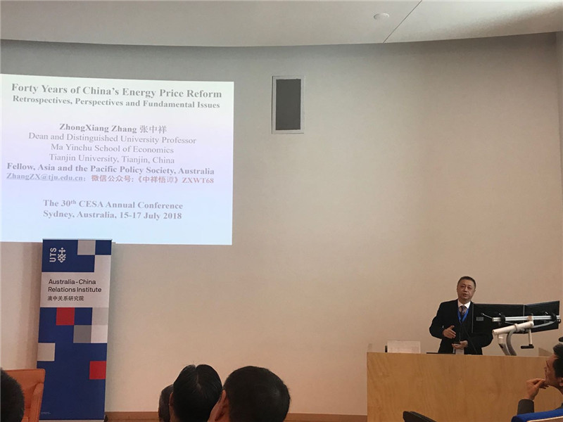 由澳大利亚中国经济研究学会(China Economics Society Australia, CESA)主办、悉尼科技大学澳中关系研究院承办的第30届澳大利亚中国经济研究学会年会于2018年7月15-17日在澳大利亚悉尼举行。应澳大利亚前外交部长、悉尼科技大学澳中关系研究院院长Bor Carr教授邀请,澳大利亚前驻华大使Geoff Raby、澳大利亚国立大学克劳福德公共政策学院宋立刚教授、北京大学国家发展研究院博雅特聘教授姚洋院长和亚太政策研究会会士、天津大学马寅初经济学院张中祥院长做了大会主旨报告。本次会议主题为“习近平新时代背景下的中国经济”,来自澳大利亚、中国、印度、新加坡等国家和地区的160多位专家学者、政府和国际机构的经济学者参加了会议。人民网、中国新闻网和新华网等中外媒体都对这次会议做了报道。