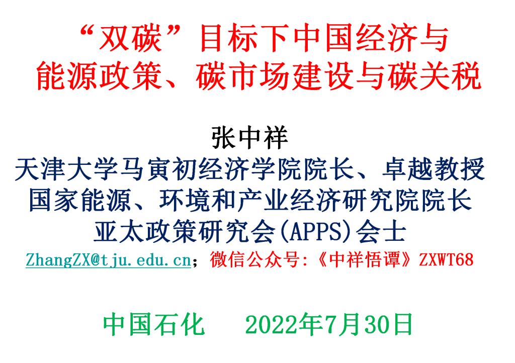 2022年7月30日,天津大学马寅初经济学院创院院长、卓越教授,国家能源、环境和产业经济研究院院长张中祥应邀以“‘双碳’目标下中国经济与能源政策、碳市场建设与碳关税”为题给天津石化做了两个半小时的专场报告,天津石化50多位中层领导和骨干参加了报告会。