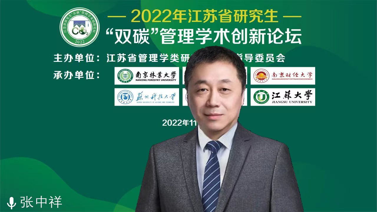 2022年11月1日上午,首届江苏省研究生“双碳”管理学术创新论坛开幕式通过腾讯云平台和全国学术在线平台在线举行。本届论坛是江苏省教育厅管理学类研究生教育指导委员会主办的研究生年度学术盛会,论坛由南京林业大学、南京航天航空大学、南京财经大学、苏州科技大学、中国矿业大学、江苏大学六所江苏省部委高校联合承办,南京林业大学研究生院和经济管理学院作为牵头单位组织论坛并作为开幕式举办单位。论坛吸引全国学术在线2000余名相关领域学者和硕博士研究生参加。天津大学马寅初经济学院创院院长、卓越教授,国家能源、环境和产业经济研究院院长张中祥应邀作了主题为“全国碳市场开市一周年盘点:回顾、评价与展望”的主旨报告。