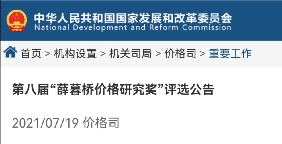 本次评选共有5部著作、30篇论文获得本届“薛暮桥价格研究奖”。国家发展改革委经济体制与管理研究所副研究员李叶妍博士与天津大学马寅初经济学院创院院长、卓越教授,国家能源、环境和产业经济研究院院长张中祥合著的论文“十四五时期互联网行业及平台反垄断规制改革建议”荣获三等奖。