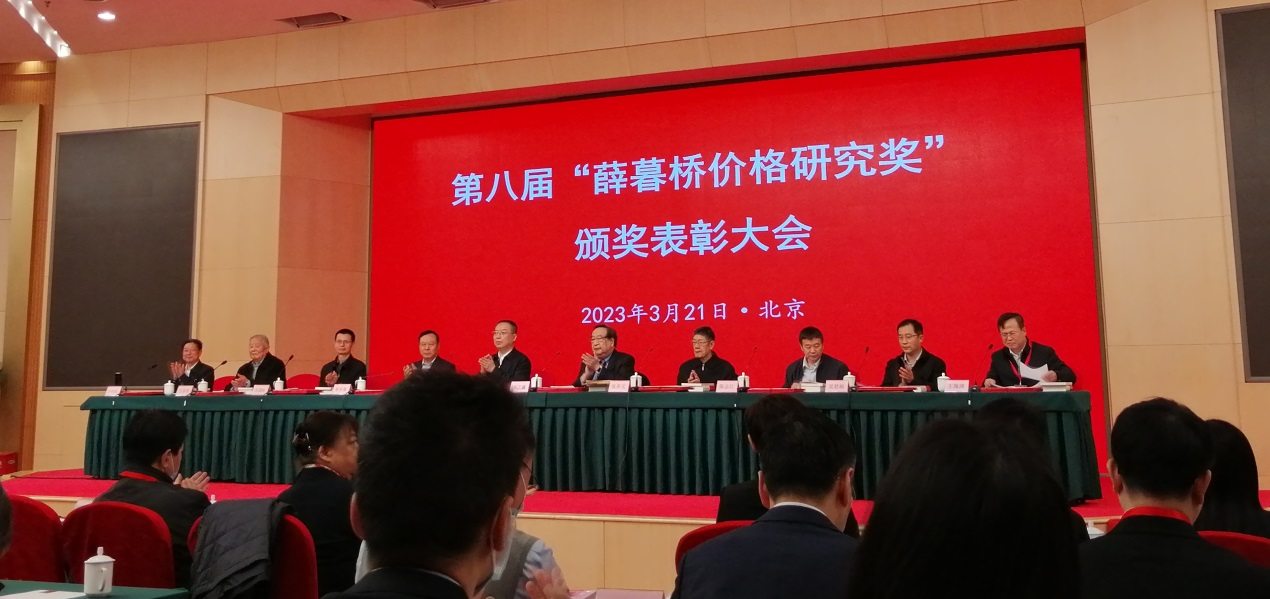 第八届“薛暮桥价格研究奖”颁奖表彰大会于2023年3月21日在北京隆重举行。来自国家发展和改革委员会、国家市场监管总局、国家医疗保障局等部门及全国价格研究和实际工作单位的200多位领导和专家出席了颁奖大会。