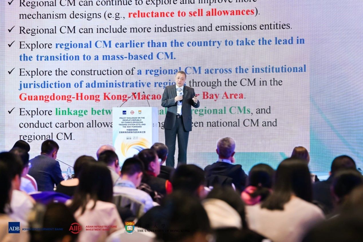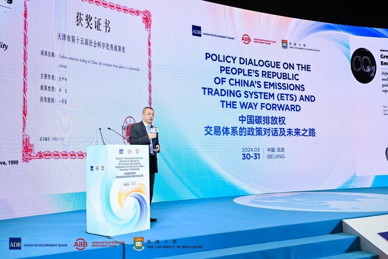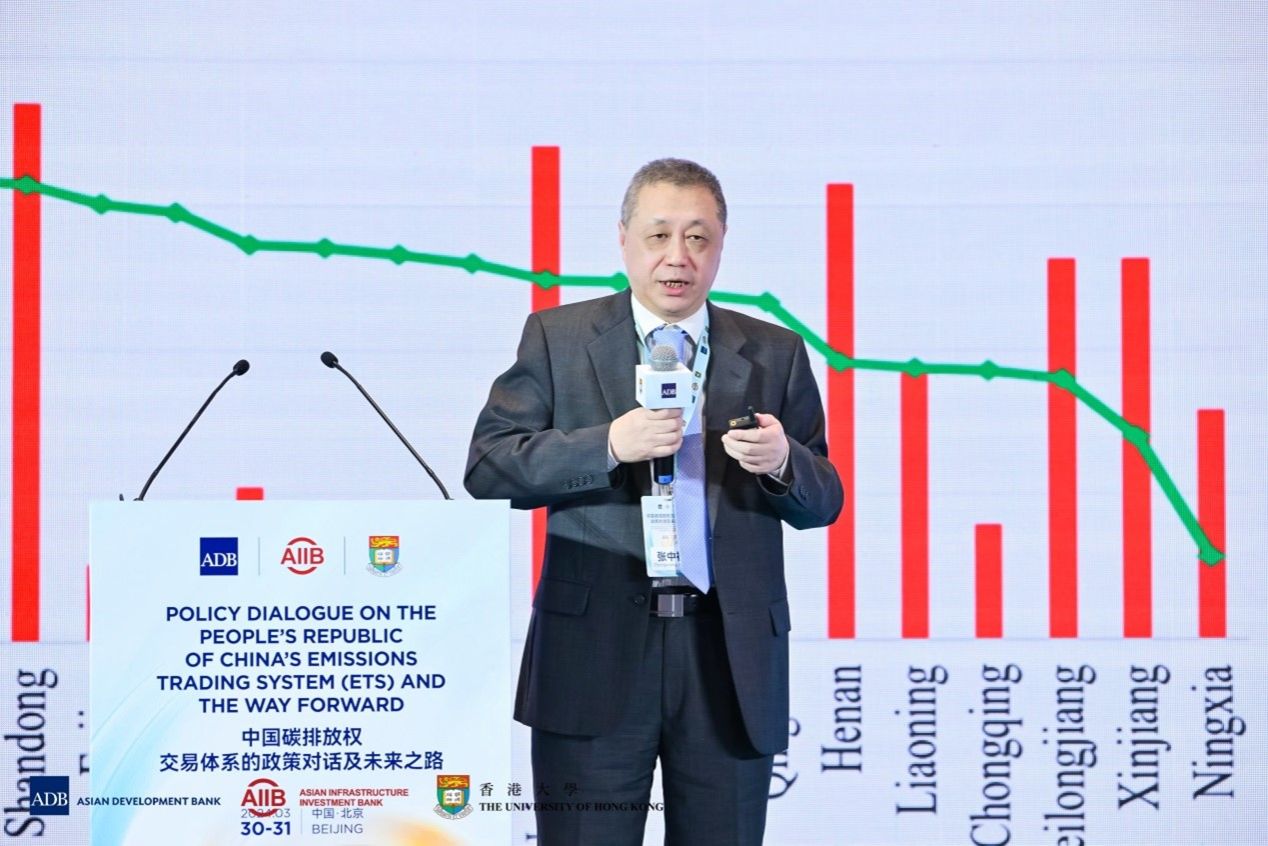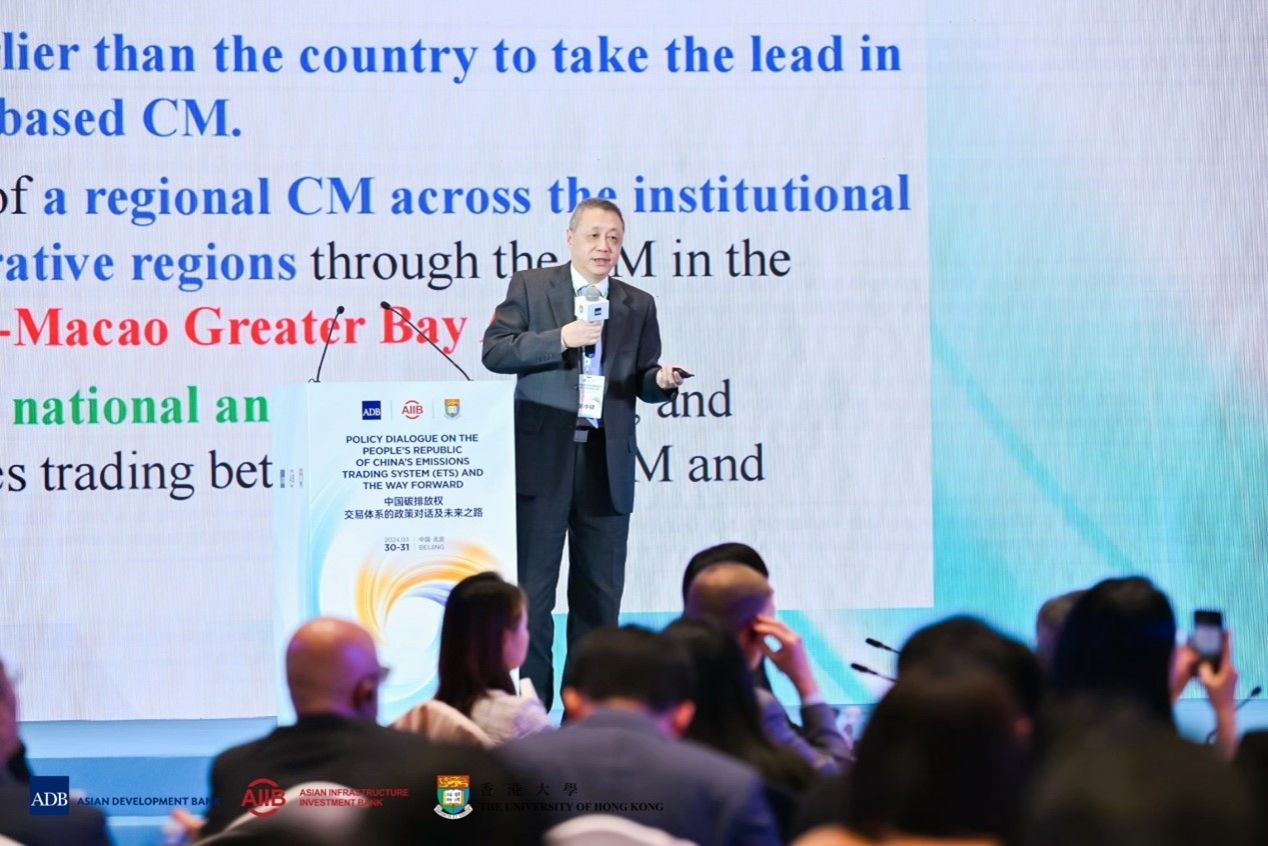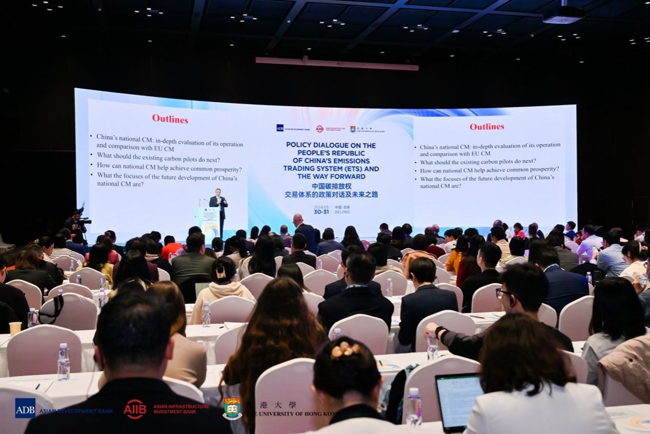“中国碳排放权交易体系的政策对话及未来之路”论坛于2024年3月30-31日在北京。论坛由亚洲开发银行、亚洲基础设施投资银行、香港大学联合举办。亚洲开发银行首席经济学家兼经济研究和区域合作局局长Albert Park、亚洲基础设施投资银行首席经济学家Erik Berglof、香港大学经济及工商管理学院院长蔡洪滨分别代表主办方致开幕词。