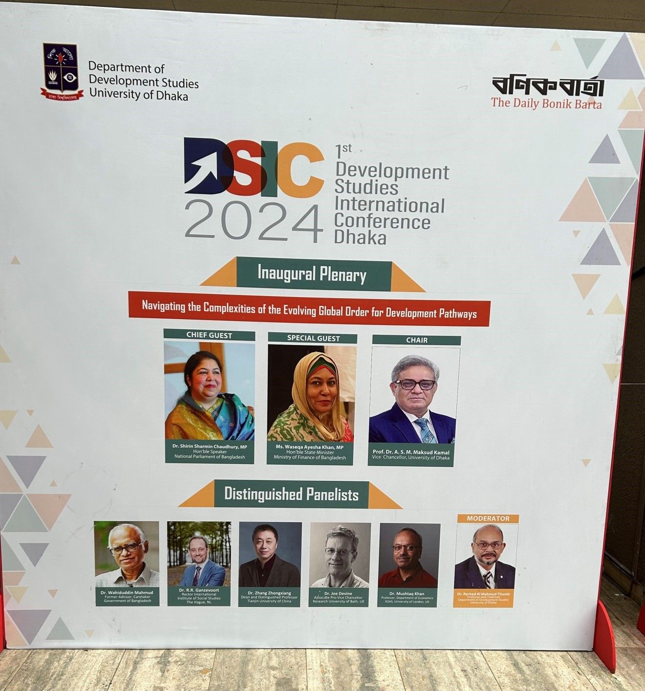 2024年5月5-6日,达卡大学主办的孟加拉国首届发展研究国际大会在首都达卡隆重举行。孟国议长乔杜里出席开幕式,孟总理经济顾问、内阁秘书、财政国务部长、计划国务部长、央行行长、达卡大学校长及政、商、学界代表,驻孟使节及国际组织代表等400余人参加。