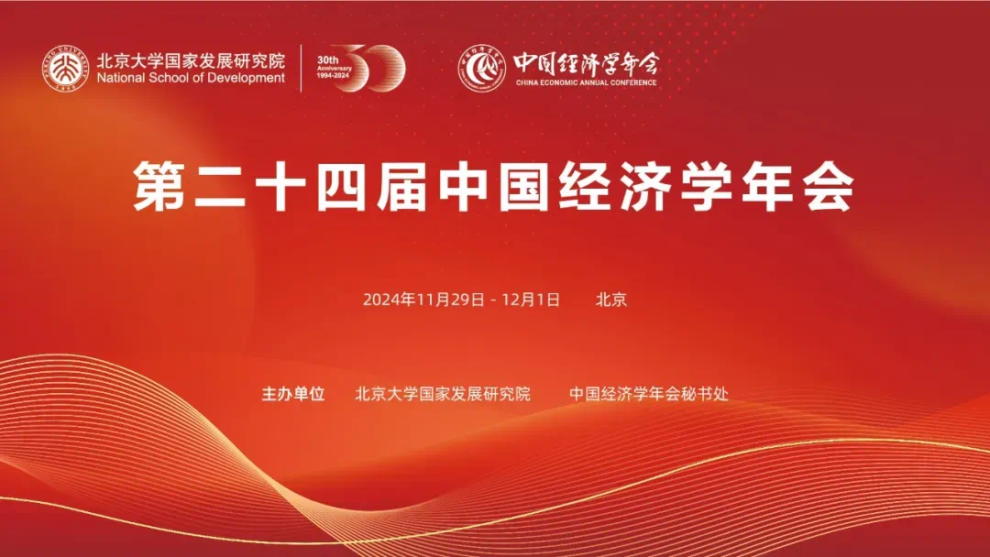 2024年11月29日-12月1日,第二十四届中国经济学年会在北京大学召开。年会由中国经济学年会秘书处与北京大学国家发展研究院联合主办。北京大学党委副书记姜国华、年会秘书长杨汝岱、北京大学国家发展研究院院长黄益平分别代表主办方致辞。中国社会科学院国家高端智库首席专家、学部委员蔡昉,伦敦大学学院经济学教授Kalina Manova先后发表主旨演讲。共有37家年会理事单位的代表,43位国内一流高校经济学院系负责人,137篇入选论文作者,17家知名出版单位与一流学术期刊的相关负责人,五家招聘单位的代表,以及来自全国各地的学者、学生、记者、经济学爱好者等近千人参加了本届盛会。