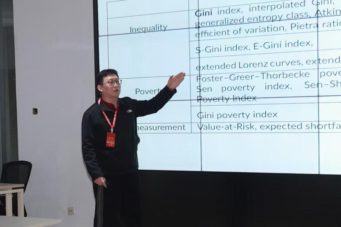 助理教授贺天宇在计量经济与经济统计分会场报告了与麦吉尔大学教授Jean-Marie Dufour的合作论文《基于相依样本的泛函比较以及不平等指标的应用》。他们主要研究在相依样本下,对渐近线性高斯泛函形式的福利指标的非参数统计推断。该方法广泛适用于不平等、贫困和风险测度指标。在比较不平等和贫困水平问题时,传统方法经常假定独立样本。但该假设并不适用于重叠样本或一般形式的相依样本。他们的研究提出基于此两类样本的渐进和自助检验方法。通过模拟实验,文章验证了方法的有效性,并且该方法由于考虑了样本相关性,能够提供更准确的结果。模拟实验还说明,当分布出现一定程度的厚尾特征,自助法表现更为稳健。最后文章应用所提出方法,比较了不用时期意大利居民财务收入的不平等水平。