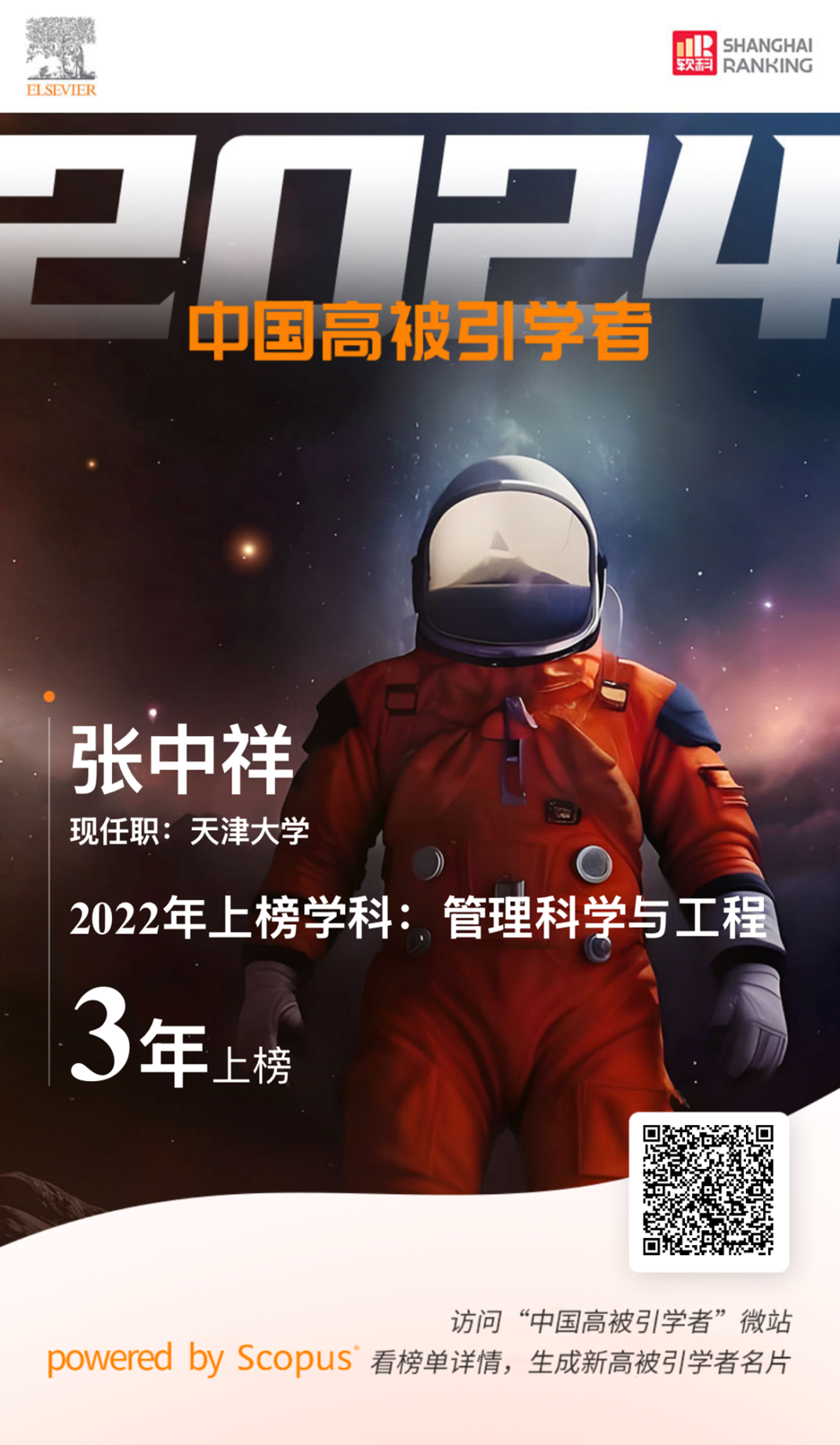 2025年3月25日,爱思唯尔(Elsevier)发布了2024度“中国高被引学者”(Highly Cited Chinese Researchers)榜单。马寅初经济学院创院院长张中祥入选应用经济学科“中国高被引学者”榜单,这是自该榜单发布以来张中祥连续11年入选经管领域“中国高被引学者”榜单,其中8次入选经济学科榜单,3次入选管理科学与工程学科榜单。