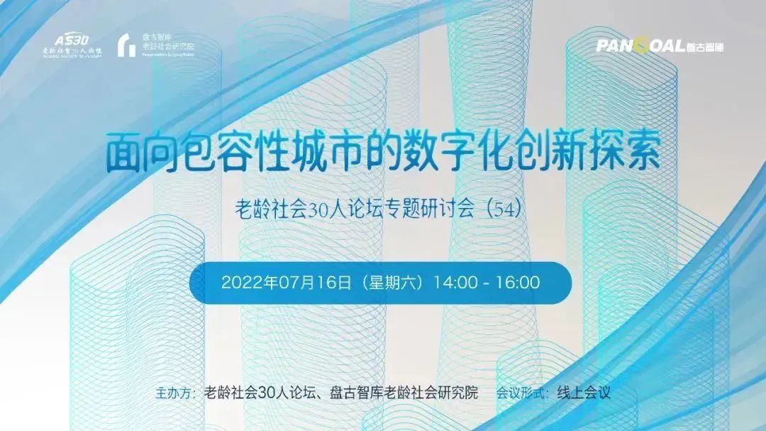 7月16日,由盘古智库老龄社会研究院和老龄社会30人论坛主办的“面向包容性城市的数字化创新探索”专题研讨会在线上成功举办。本次研讨会邀请北京城市象限科技有限公司创始人、CEO,北京社区研究中心主任茅明睿主讲。