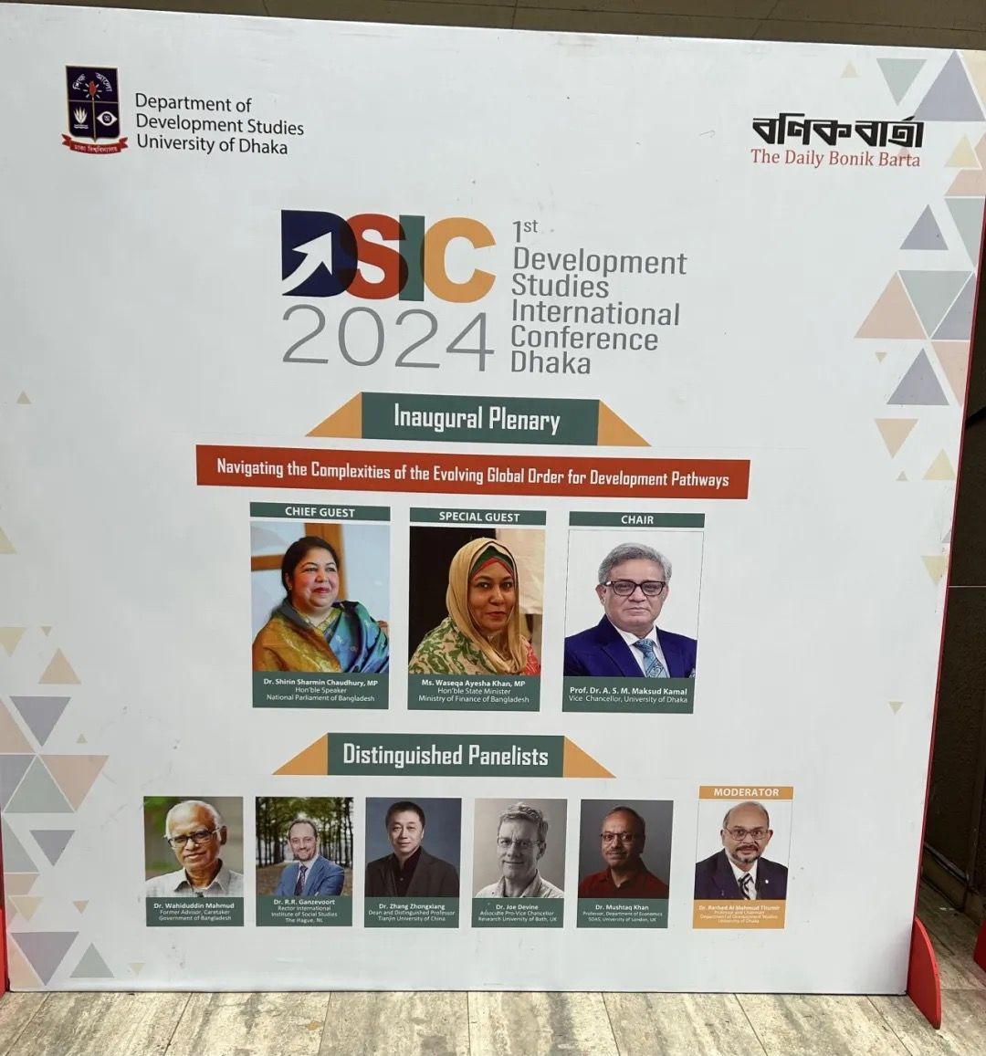 2024年5月5-6日,达卡大学主办的孟加拉国首届发展研究国际大会在首都达卡隆重举行。孟国议长乔杜里出席开幕式,孟总理经济顾问、内阁秘书、财政国务部长、计划国务部长、央行行长、达卡大学校长及政、商、学界代表,驻孟使节及国际组织代表等400余人参加。