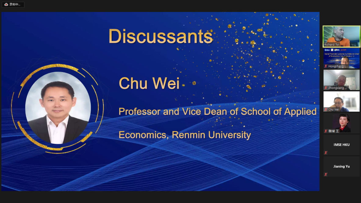 魏楚教授首先肯定了Richard S.J. Tol MAE教授的三个发现,即:气候影响经济体的洞见可以被视为对增长理论的补充,区分了气候与天气的不同影响有助于我们考虑短期与长期的生产反应路径,验证了气候与天气效应在贫富程度不同的国家、冷热不同的国家有所不同。魏楚教授认为Richard S.J. Tol MAE教授的研究带来了新洞见,例如,区分气候和天气、并对二者同时建模型,使用前沿分析工具等。他特别指出,气候对穷国富国的影响不同这一见解,提示我们在考察中国碳中和方案的影响要区分不同群组的动态和异质效果,也要评估相关的非经济效应。魏楚教授建议,可以在处理数据时试一下时间跨度划分不同是否会影响结果,也可以检查根据其它指标(例如增长率)区分不同组别时分析是否会受影响。