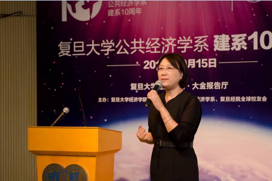 上海市国家税务局和地方税务局党组书记、副局长龚祖英女士表达了她对公共经济学系建系十周年的祝贺,并发表了题为“一带一路”倡议、国际税收和海外企业发展的主旨演讲。
