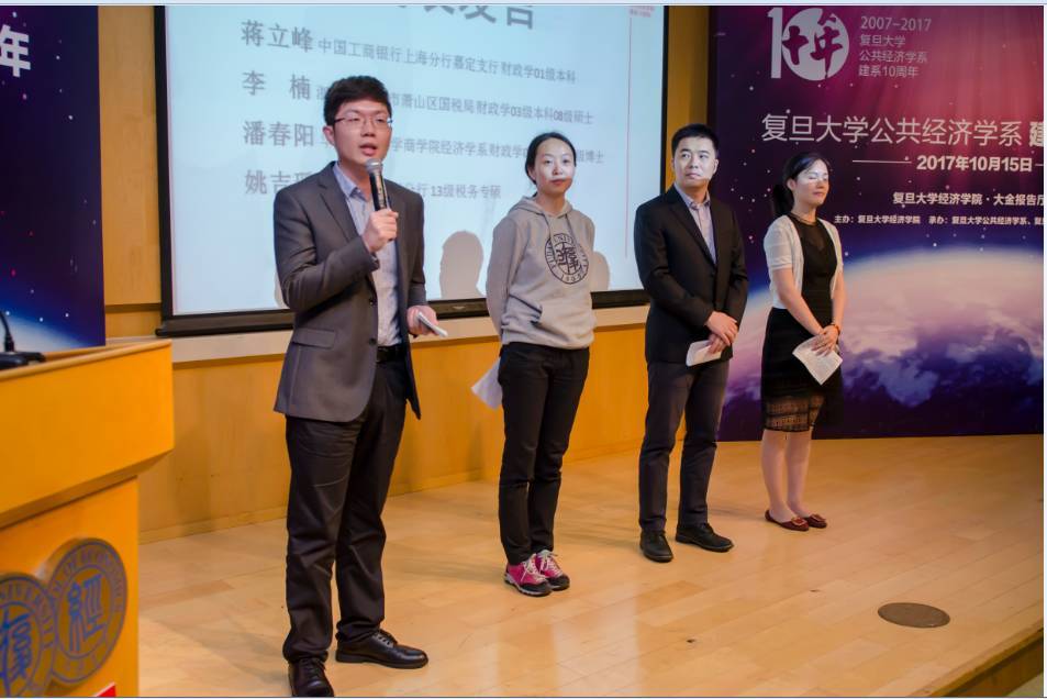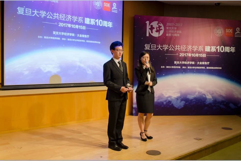 2017年10月15日,复旦大学公共经济学系建系10周年纪念活动在经济学院大金报告厅隆重举行。在这个秋高气爽,丹桂飘香的季节里,复旦大学公共经济学系迎来了建系十周年,来自社会各界的校友、嘉宾,来到经济学院,共同庆祝这一意义非凡的时刻。本次活动由复旦大学经济学院主办,复旦大学公共经济学系和复旦经院全球校友会承办。