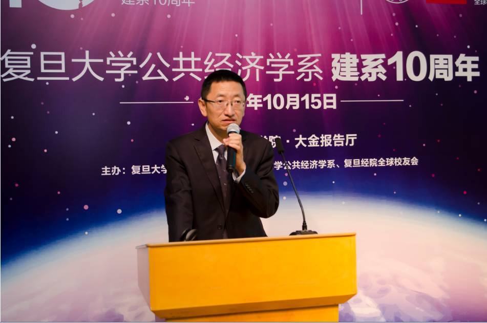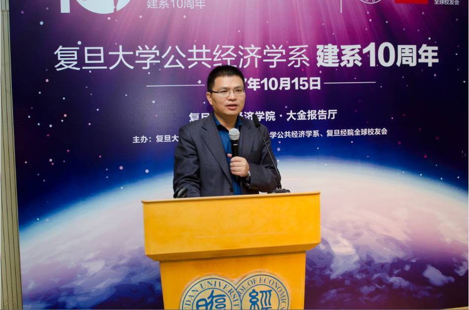 复旦大学校长助理、财务处处长苟燕楠教授代表校领导为公共经济学系建系10周年带来祝贺。苟教授从三个方面的现实形势,谈到了公共经济学系要回归到一些基本问题上来,并要求要认真思考公共经济运行逻辑,并以“日新月异,高歌猛进”为结尾表达了他对公共经济学系之后十年的发展展望。