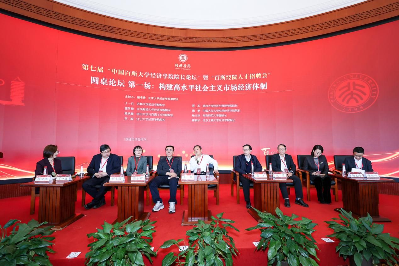 “构建高水平社会主义市场经济体制”圆桌论坛由北京大学经济学院副院长锁凌燕主持。吉林大学经济学院院长丁一兵、中央财经大学经济学院院长郭冬梅、四川大学马克思主义学院院长蒋永穆、辽宁大学经济学院院长李政、武汉大学经济与管理学院院长聂军、中国人民大学应用经济学院院长魏楚、河南师范大学副校长杨玉珍、北京工商大学经济学院院长詹新宇等嘉宾围绕主题进行了深入探讨。