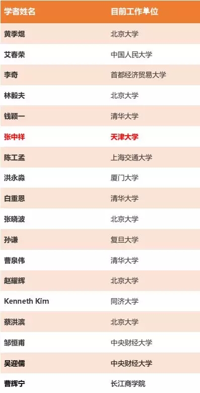 继连续位列经济、经济计量学与金融领域2015年、2016年中国高被引学者榜单第4位,天津大学马寅初经济学院院长、卓越教授,国家能源、环境和产业经济研究院院长张中祥连续五年入选经济、经济计量学与金融领域“中国高被引学者”榜单。