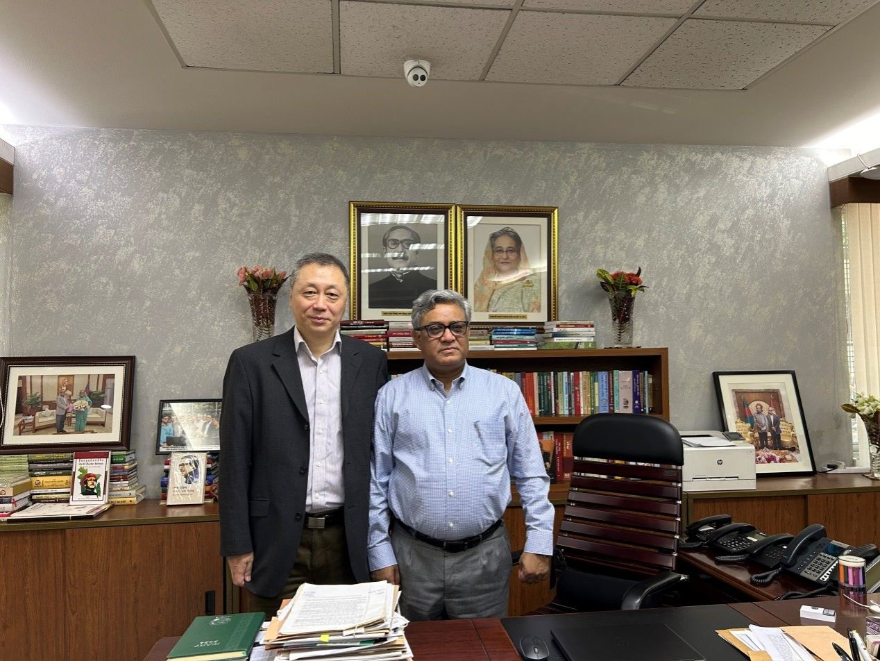 (与达卡大学校长Maksud Kamal在校长办公室合影)