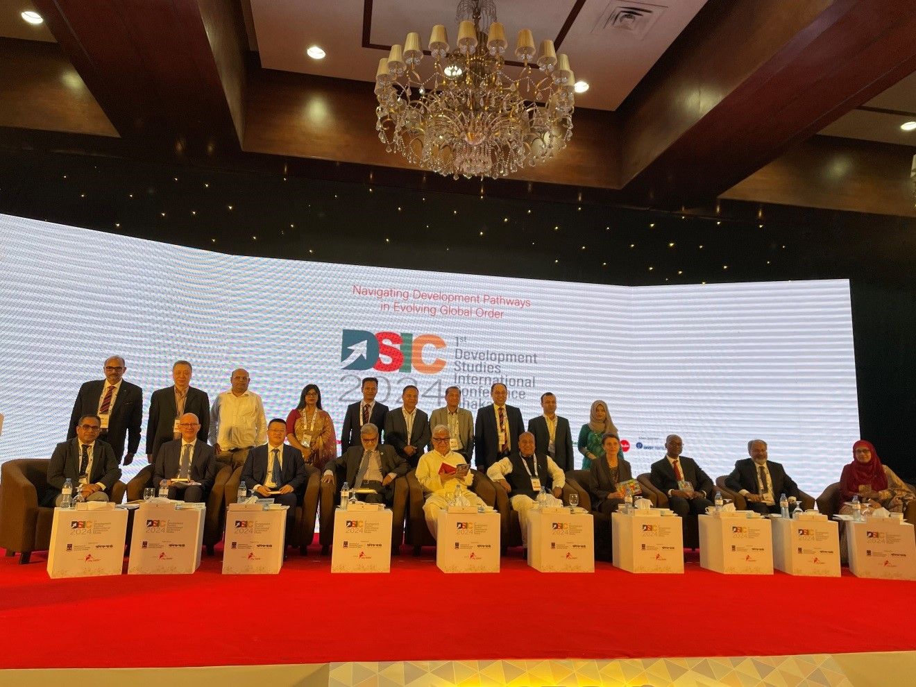 2024年5月5-6日,达卡大学主办的孟加拉国首届发展研究国际大会在首都达卡隆重举行。孟国议长乔杜里出席开幕式,孟总理经济顾问、内阁秘书、财政国务部长、计划国务部长、央行行长、达卡大学校长及政、商、学界代表,驻孟使节及国际组织代表等400余人参加。