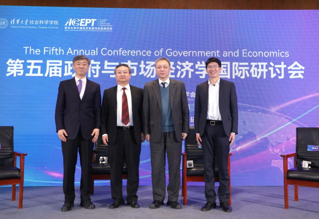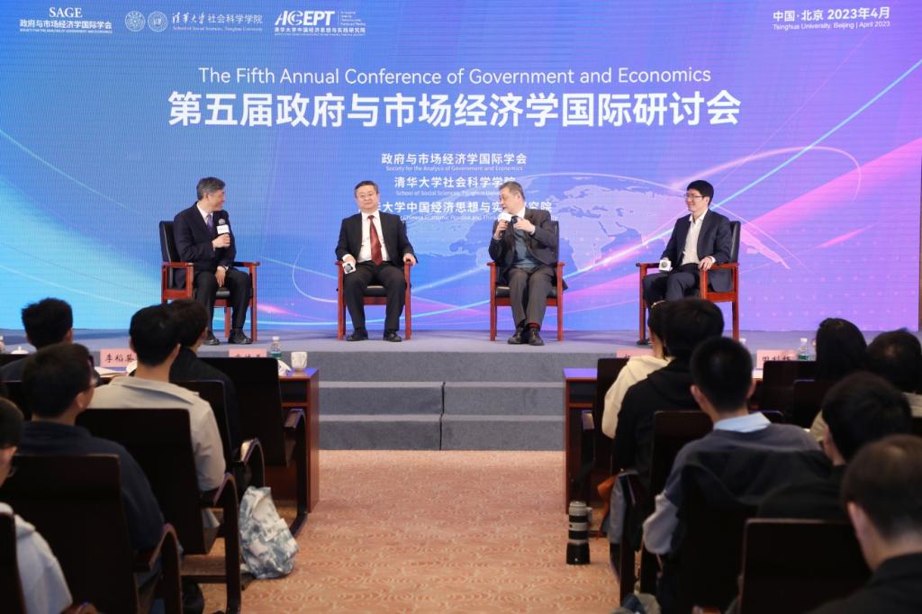 在清华大学庆祝建校112周年之际,由政府与市场经济学国际学会、清华大学中国经济思想与实践研究院和清华大学社会科学学院联合主办的第五届政府与市场经济学国际会议于2023年4月22日在清华大学主楼举行。诺贝尔经济学奖获得者、哈佛大学亚当斯讲席教授Eric Maskin,中国社会科学院副院长高培勇研究员,诺贝尔经济学奖获得者、哥伦比亚大学Edmund Phelps教授和印度德里大学Rohini Somanathan教授依次做了主旨报告。随后,广西大学副校长田利辉教授,天津大学马寅初经济学院创院院长张中祥教授,中央财经大学校长助理、经济学院院长陈斌开教授参加了圆桌讨论,圆桌讨论由政府与市场经济学国际学会联合主席、清华大学中国经济思想与实践研究院院长李稻葵教授主持。