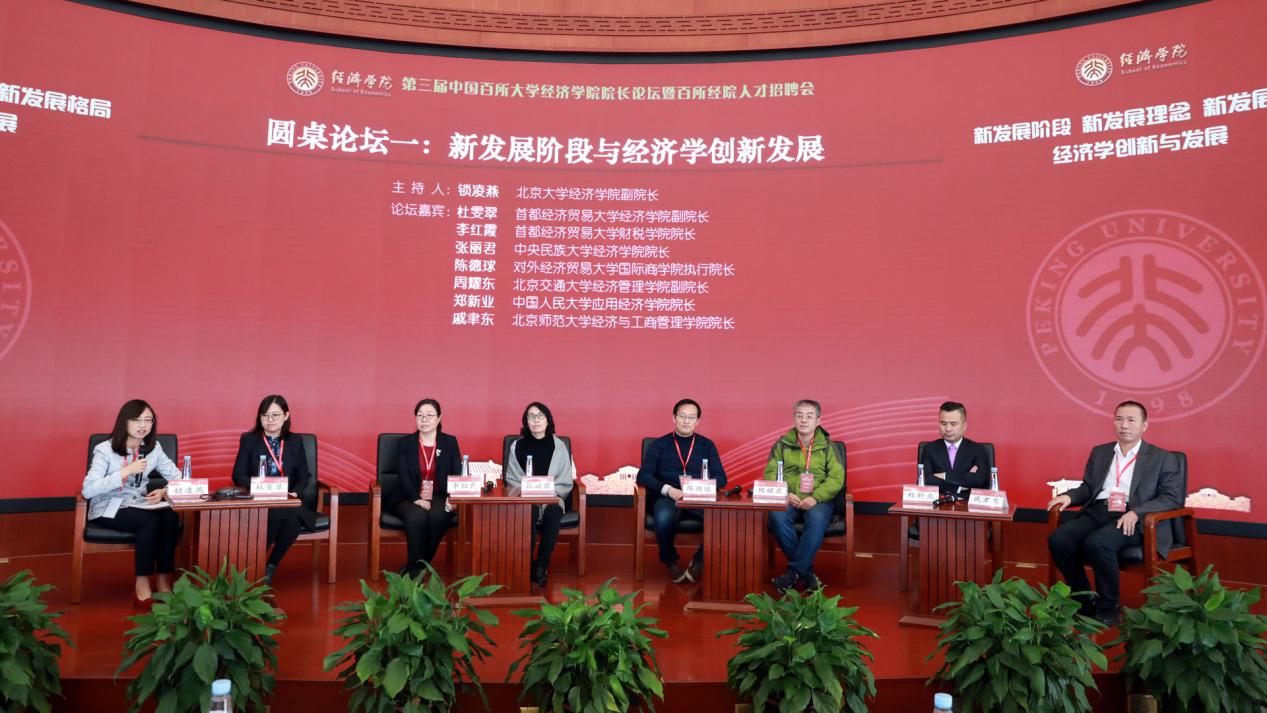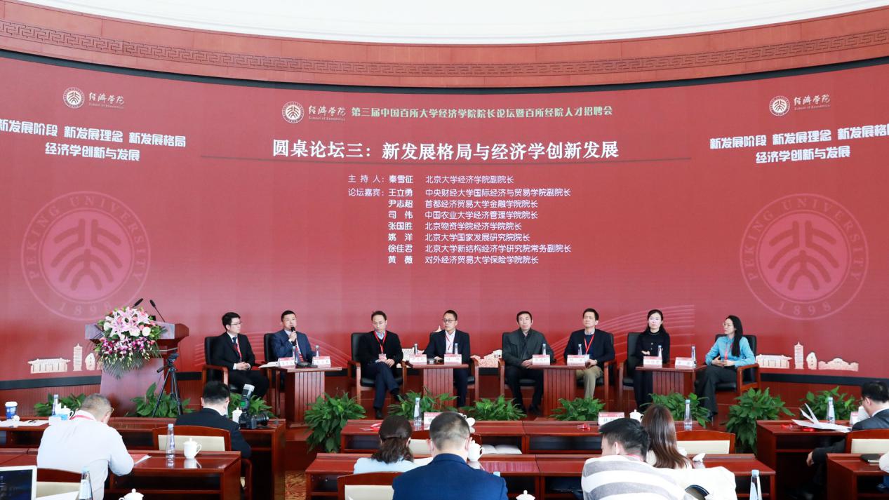 “新发展阶段与经济学创新发展”圆桌论坛由北京大学经济学院副院长锁凌燕主持。首都经济贸易大学经济学院副院长杜雯翠、首都经济贸易大学财税学院院长李红霞、中央民族大学经济学院院长张丽君、对外经济贸易大学国际商学院执行院长陈德球、北京交通大学经济管理学院副院长周耀东、中国人民大学应用经济学院院长郑新业、北京师范大学经济与工商管理学院院长戚聿东等嘉宾围绕主题进行了深入交流和观点分享。