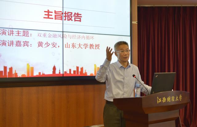 为深入领会和贯彻落实习近平总书记2020年8月24日在经济社会领域专家座谈会上的讲话精神,进一步推动我国经济高质量发展,10月28日,江西财经大学经济学院和习近平经济思想研究院联合主办“疫情下中国经济发展新格局”高端论坛。本次论坛邀请了国家级领军人才、山东大学经济研究院院长黄少安教授,天津大学马寅初经济学院院长、卓越教授张中祥教授,国家级青年人才、复旦大学经济学院李志远教授等三位著名专家作为演讲嘉宾。江西财经大学副校长袁红林教授出席本次论坛并致辞,经济学院院长张利国教授主持本次论坛,校内外200余名师生参会。