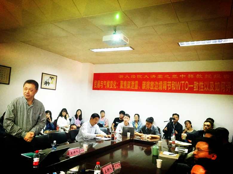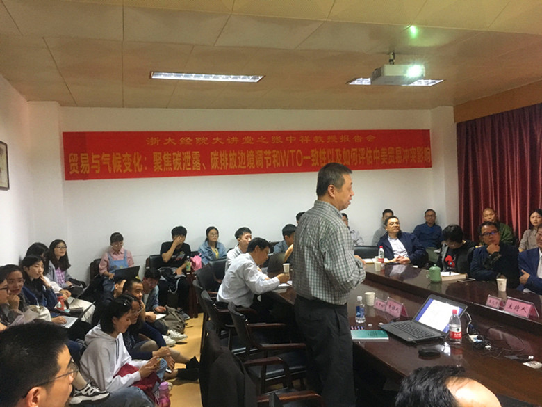 张中祥教授的报告是基于他的英文专著Trade and Climate Change: Focus on Carbon Leakage, Border Carbon Adjustments and WTO Consistency的研究成果。该专著作为Foundations and Trends in Microeconomics期刊单独一期,是该期刊自2005年创刊以来收录的首篇署名来自中国,首位来自欧美之外机构、首位亚裔作者的文章。
