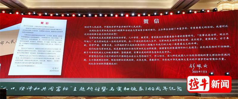 在“人口、经济和共同富裕”主题暨马寅初诞辰140周年纪念会现场,全国人大常委会原副委员长彭珮云发来贺信,浙江大学党委书记任少波、绍兴市委书记盛阅春致辞。绍兴市委副书记、市长施惠芳主持,市领导丁如兴、胡敏参加。