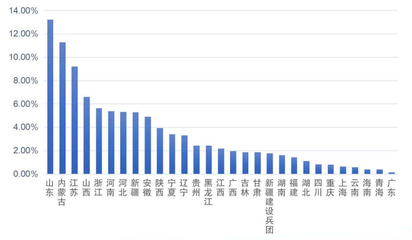 全国碳市场第一个履约周期配额分配量最大的地区是山东、内蒙古、江苏,配额总量占全国33.71%。300MW等级以上常规燃煤机组、300MW等级及以下常规燃煤机组、非常规燃煤机组、燃气机组分配配额量分别占总配额量的32.4%、48.3%、18.4%、0.9%。