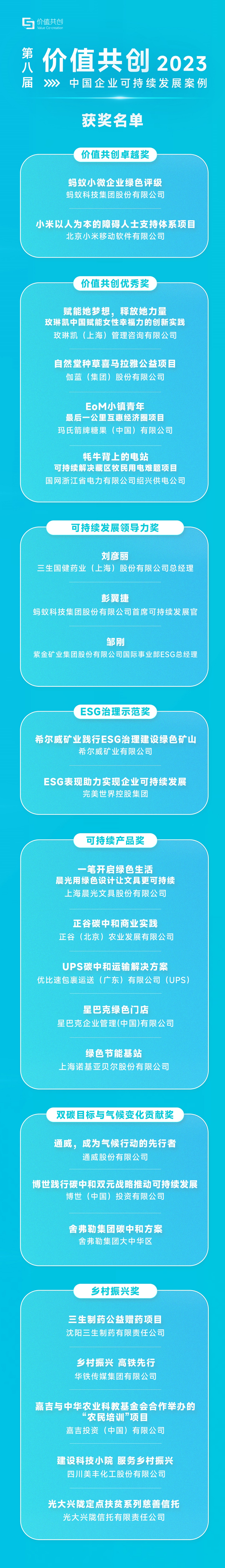 郑明教授、张中祥教授、吴荣良律师、蒋青云教授代表今年的专家评审团揭晓“可持续发展领导力奖”“双碳目标与气候变化贡献奖”“可持续产品奖”“ESG治理示范奖”“乡村振兴奖”“价值共创优秀奖”六项大奖和教授专家委员会一致认定的年度“价值共创卓越奖”。