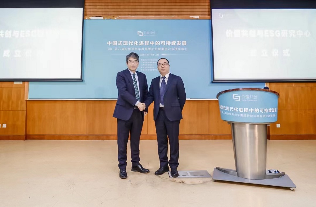 自2015年发起,价值共创已经走到了第八年,八年间累计收录企业“价值共创”类型的可持续发展案例592个,评选出获奖案例194个。当天,复旦大学东方管理研究院院长、复旦大学管理学院蒋青云教授宣布设立“价值共创与ESG研究中心”。研究中心隶属于复旦大学东方管理研究院,将联合社会相关机构和研究力量,以“价值共创”理论为基础,推进中国企业的价值共创与ESG理论研究和实践探索,总结中国企业的可持续发展成果,助力中国式现代化的实现。