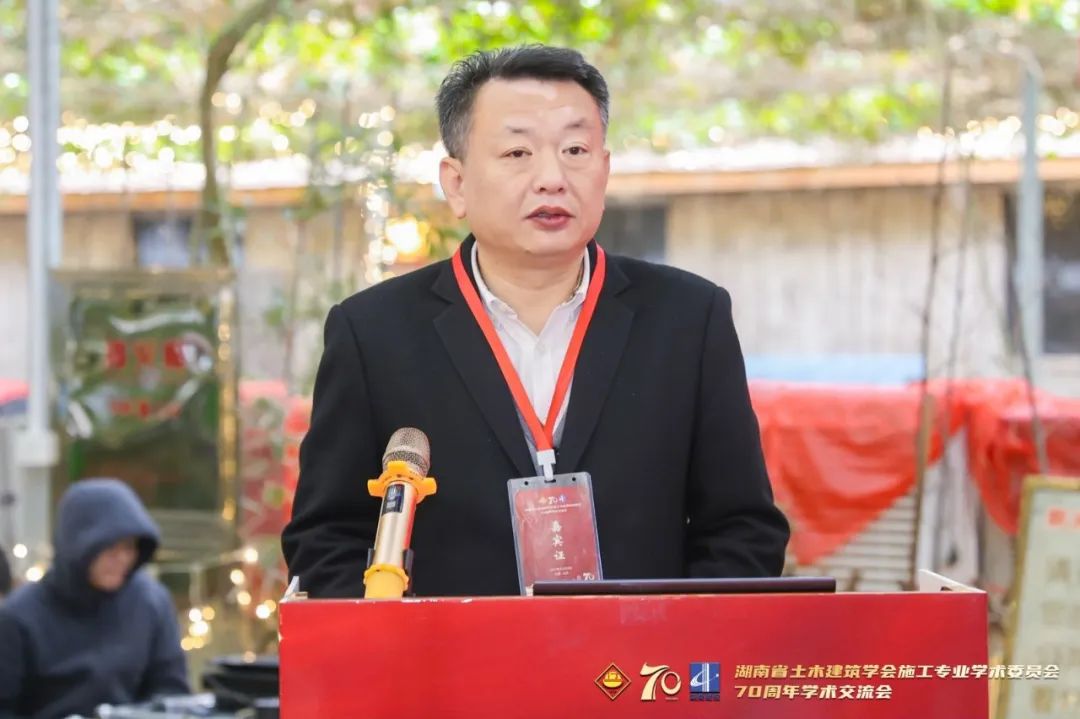 易继红代表湖南省住房和城乡建设厅对施专委成立70周年表示诚挚的祝贺,希望施工专业委员会继续把握行业趋势,弘扬工匠精神,不断凝聚土木工程界施工技术力量,创新工程技术进步,引领工程科技发展,为社会、行业和企业提供优质服务,培养建筑施工技术领军人才,发挥行业协会桥梁作用,提高工程技术创新水平,为我省建造模式转型升级、为工程技术革新换代,为行业高质量发展贡献智慧力量、树立成功典范。