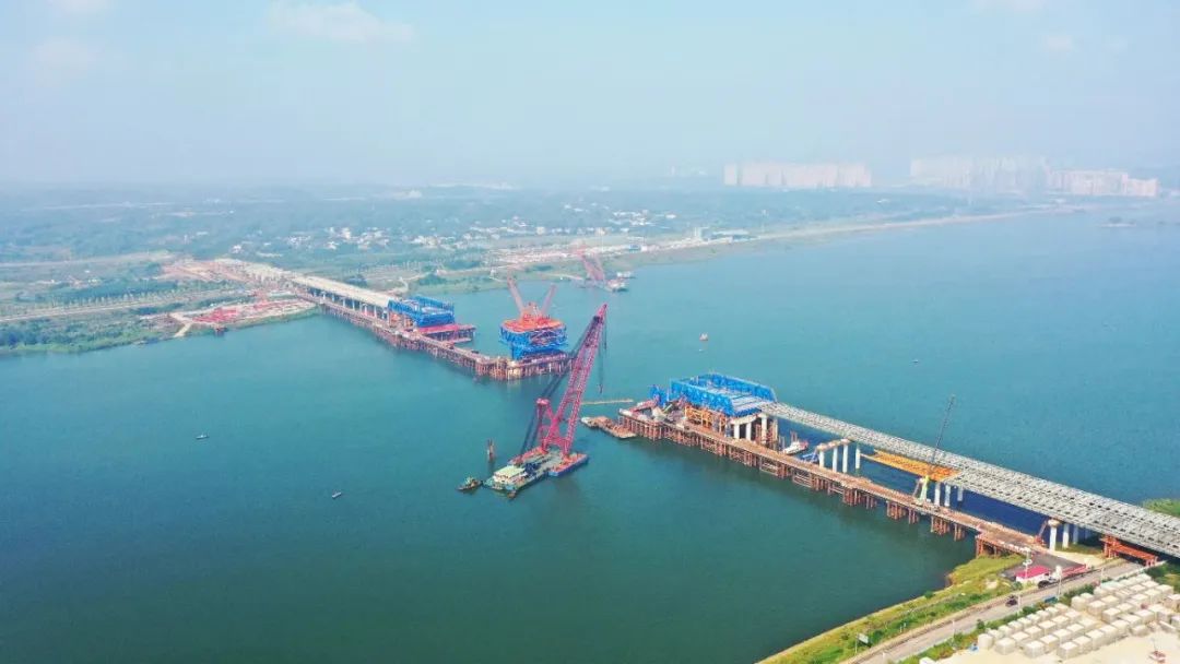 26日下午,专委会组织与会人员参观了由湖南建设投资集团旗下湖南路桥建设集团有限责任公司作为牵头人与中交第二航务工程局有限公司联合承建的暮坪湘江特大桥。湖南路桥建设集团有限责任公司承建大桥全部主桥工程。主桥采用(70+180+180+70)m 四跨连续中承飞燕式钢桁拱桥,为国内公路系统首座全焊接结构的双飞燕式钢桁架拱桥,桥梁总长500m,主跨2×180m, 主桥共有φ2m 水中桩基76根,特大型深水嵌岩承台基础10个,上部构造钢结构1.6万吨。本项目为湖南省重点工程、长沙市十大重点工程,长株潭融城重点工程,系湖南路桥继湘江北大桥、南大桥和福元路大桥后再次承建的长沙市标志性过江通道建筑。