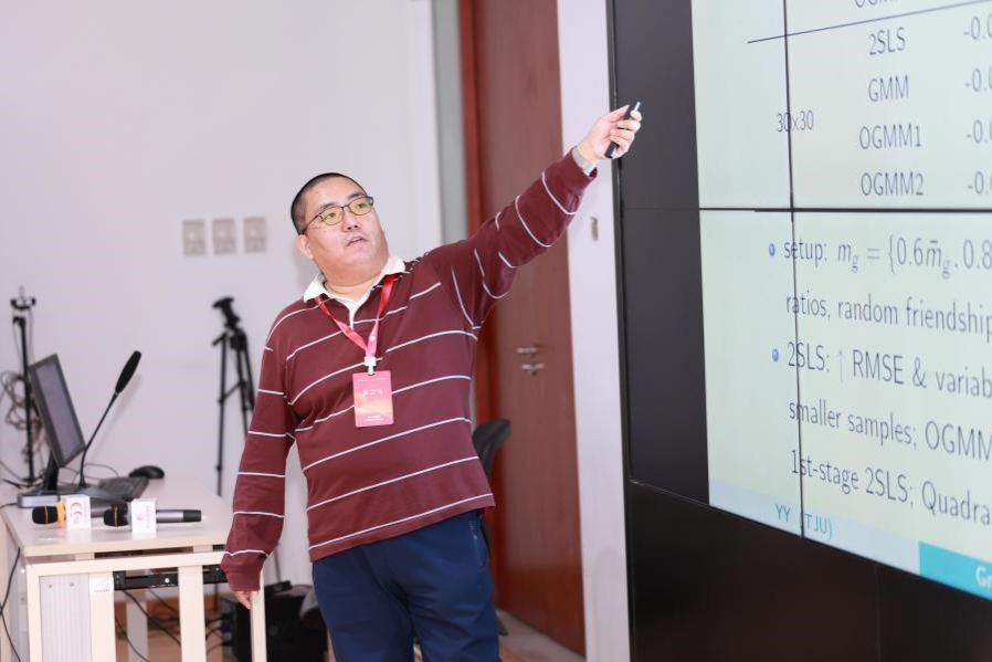 助理教授杨阳在计量经济与经济统计分会场报告了与西澳大学讲师林燕丽的合作论文“Estimating Group Network Effects with Type Associated Heterogeneity and Unknown Heteroskedasticity”。本文研究了线性的分组网络效应模型,并允许模型中的系数具有和个体类别相关的异质性。在未知异方差的情况下,他们提出的两阶段最小二乘估计量和广义矩估计量均具有渐近一致性和渐近正态性,并且在蒙特卡罗模拟中具有良好的小样本表现。通过将模型应用于中国初中学生的学习成绩,本文揭示了基于认知能力相似度的班级同群效应的性别异质性,以及不同学生特质的性别异质性影响。通过反事实分析,他们的研究得出了鼓励学生间互动的教育策略的一些潜在收益和风险。